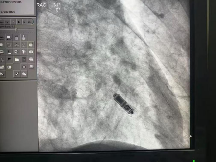 专家团队通过右侧股静脉穿刺,将仅如维生素胶囊大小的Micra起搏器,通过微创递送系统精准送达右心室理想位置。并确认起搏器定位精准、固定牢固、感知灵敏,阻抗正常。