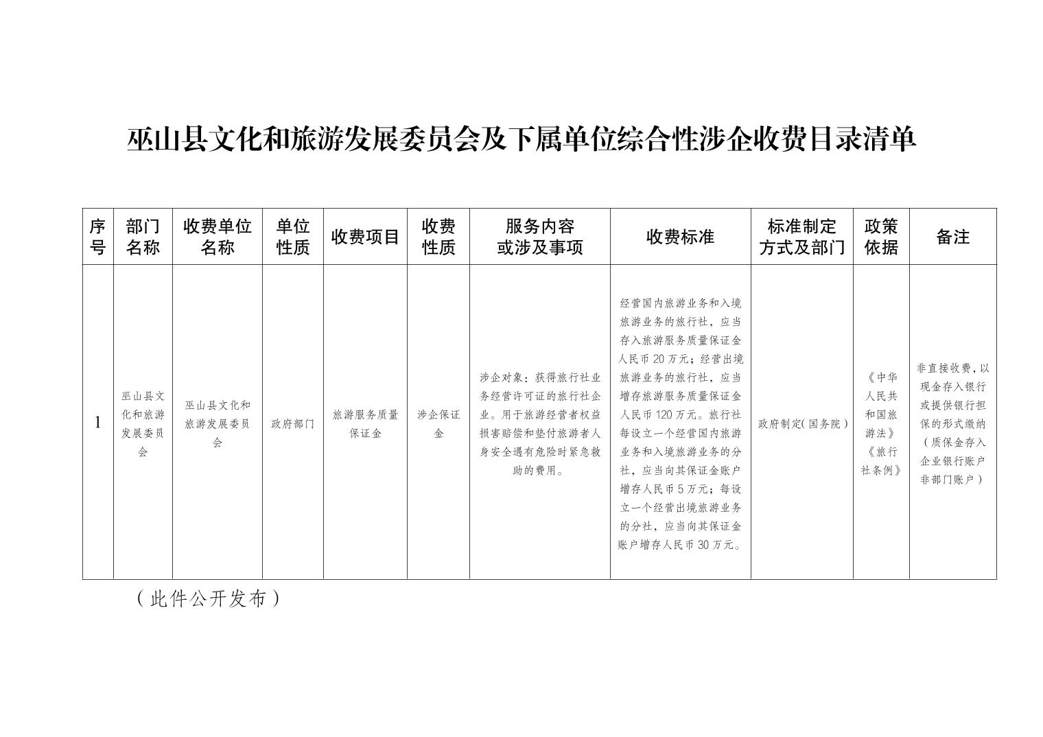 巫山县文化和旅游发展委员会及下属单位综合性涉企收费目录清单