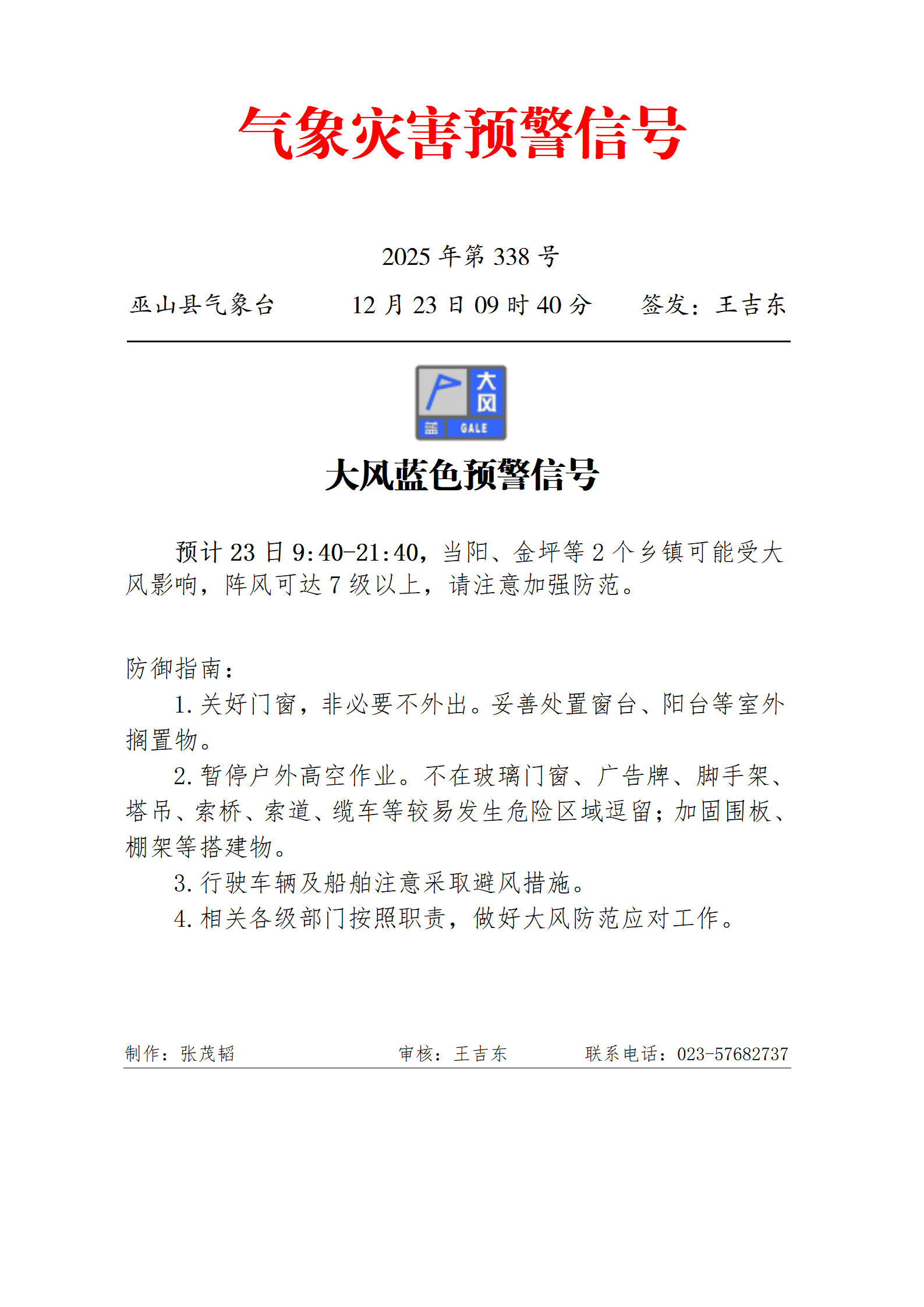 大风蓝色预警信号