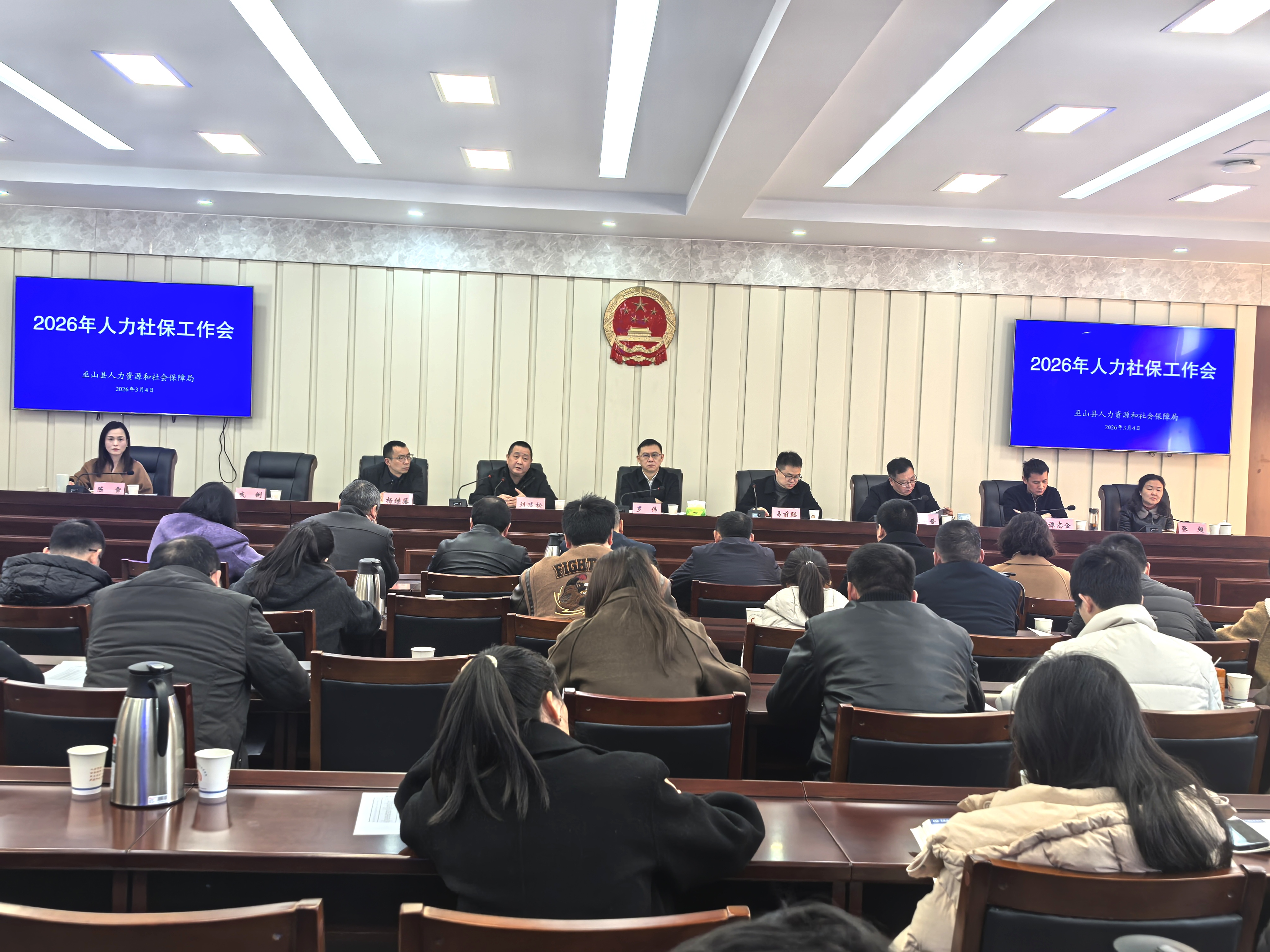 3月4日上午,2026年全县人力社保工作会议顺利召开。会议以习近平新时代中国特色社会主义思想为指导,全面贯彻落实党的二十大和二十届历次全会精神、习近平总书记视察重庆重要讲话重要指示精神,落实各级相关工作部署及市县“两会”要求,总结2025年人社工作成效,部署2026年重点任务。县委常委、县政府副县长罗伟出席并讲话,县人力社保局党委书记、局长易前聪作工作报告,驻县府办纪检监察组组长刘廷松提出纪检要求。县人社局全体干部职工、各乡镇(街道)分管负责人及业务骨干参会。