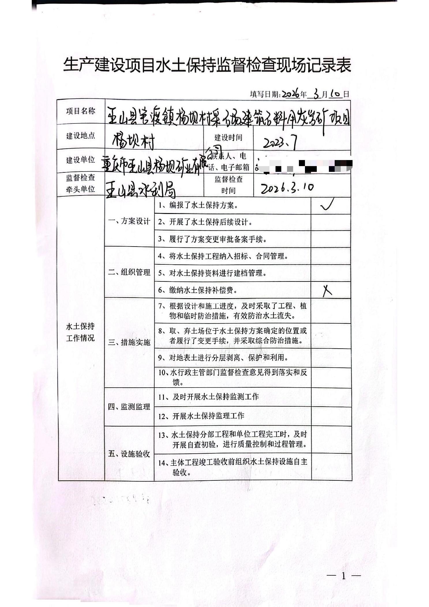 生产建设项目水土保持监督检查现场记录表