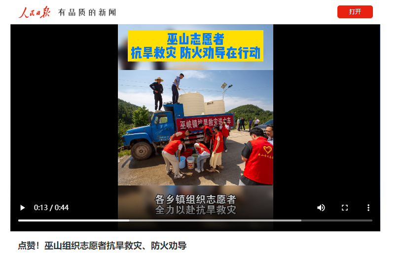 巫峡镇:连日来,受持续干旱天气影响,巫峡镇春泉村村支两委主动下沉一线,深入各社找寻水源,科学调水引水,牢牢守住人畜饮水,千方百计确保群众生活和农业生产用水需求。同时,引导群众开展抗旱自救,倡导大家树立节约用水意识,干群携手,共同打好这场抗旱硬仗。