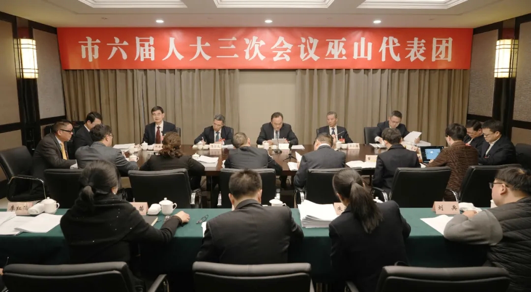 1月21日下午,出席市六届人大三次会议的巫山代表团召开全体会议,酝酿提名候选人建议名单、市第六届人民代表大会有关专门委员会主任委员人选建议名单,及总监票人、监票人名单草案;审议市人大常委会工作报告。