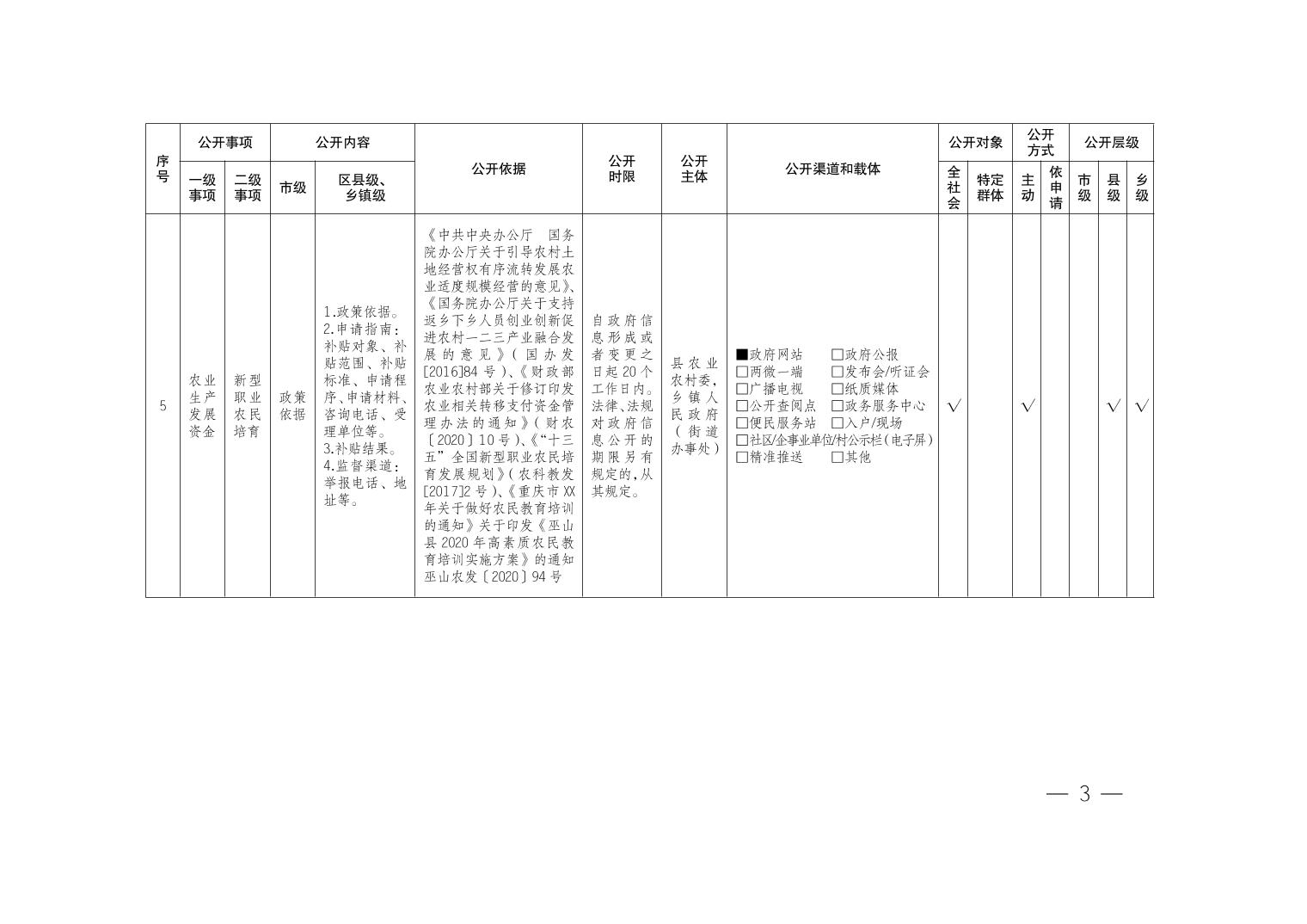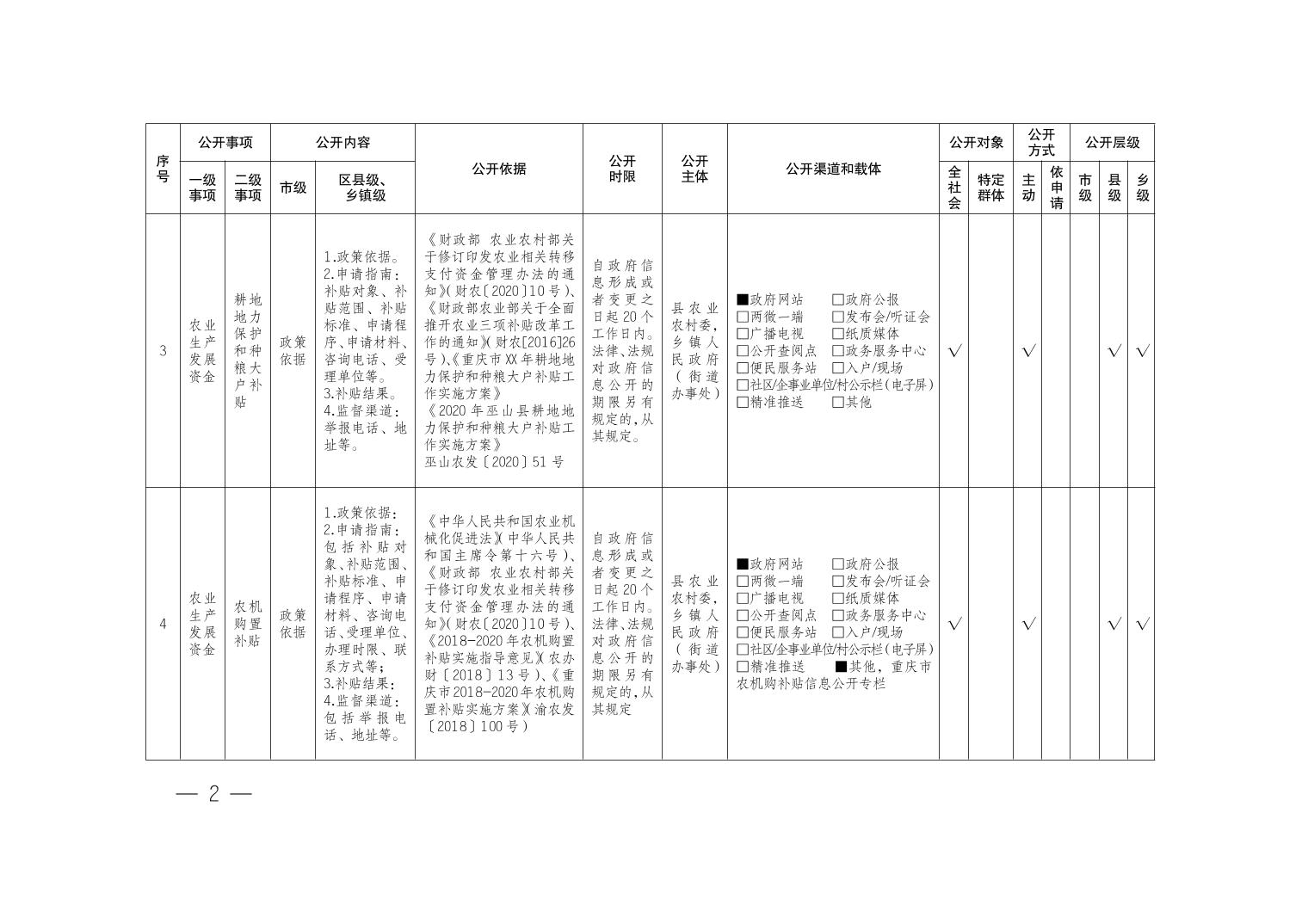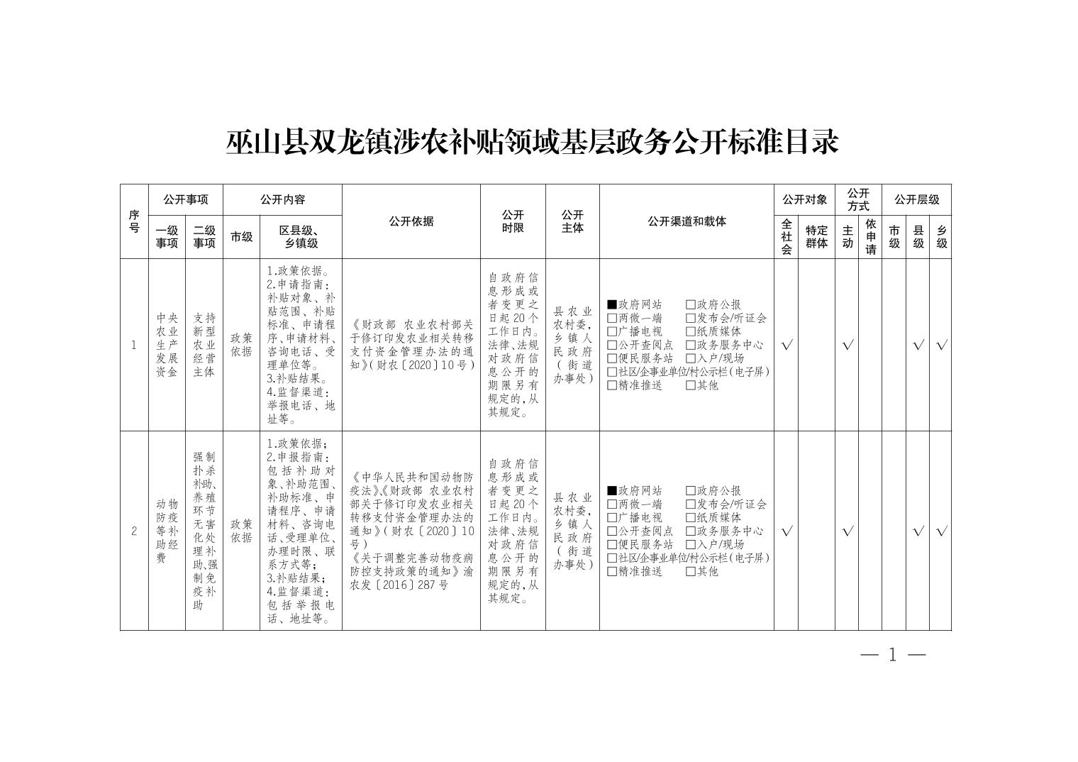 巫山县双龙镇涉农补贴领域基层政务公开标准目录