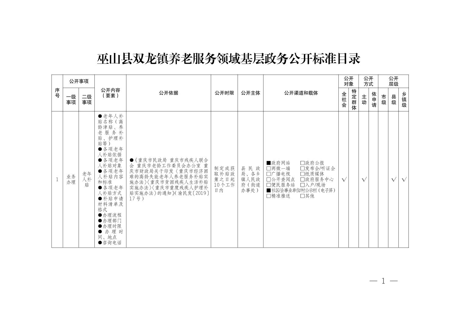 巫山县双龙镇养老服务领域基层政务公开标准目录