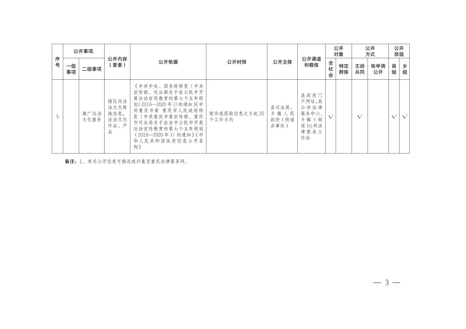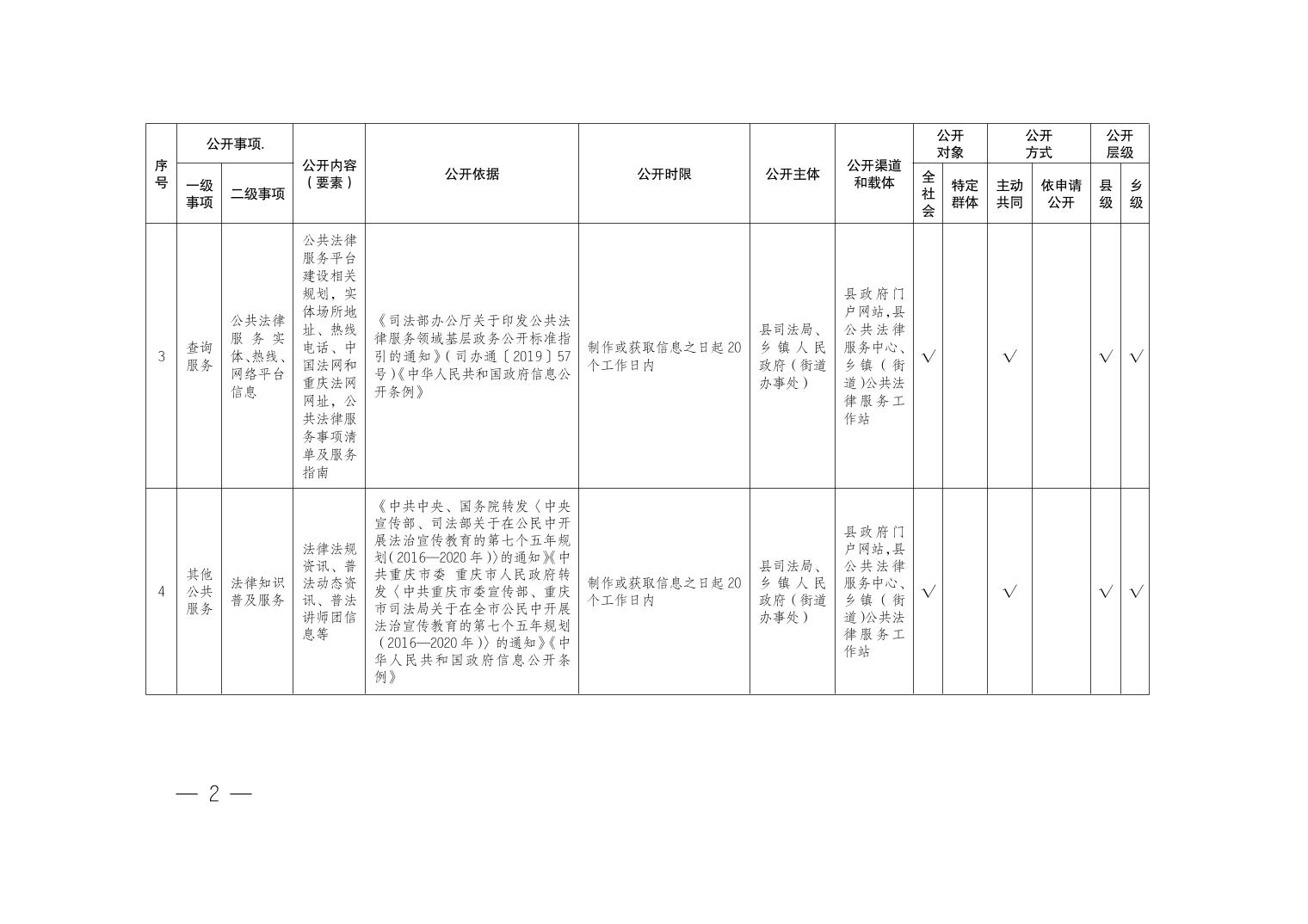 巫山县双龙镇公共法律服务领域基层政务公开标准目录