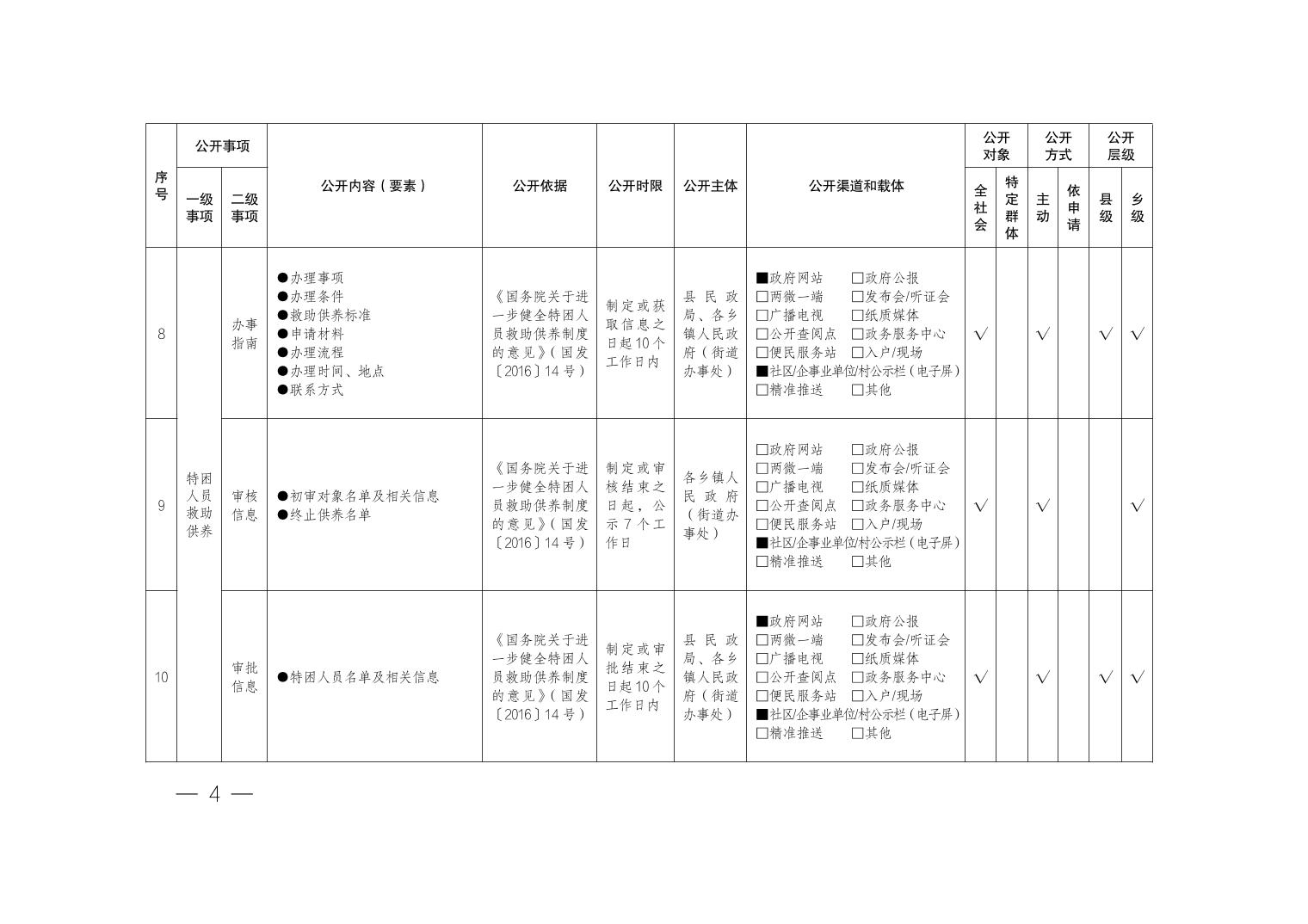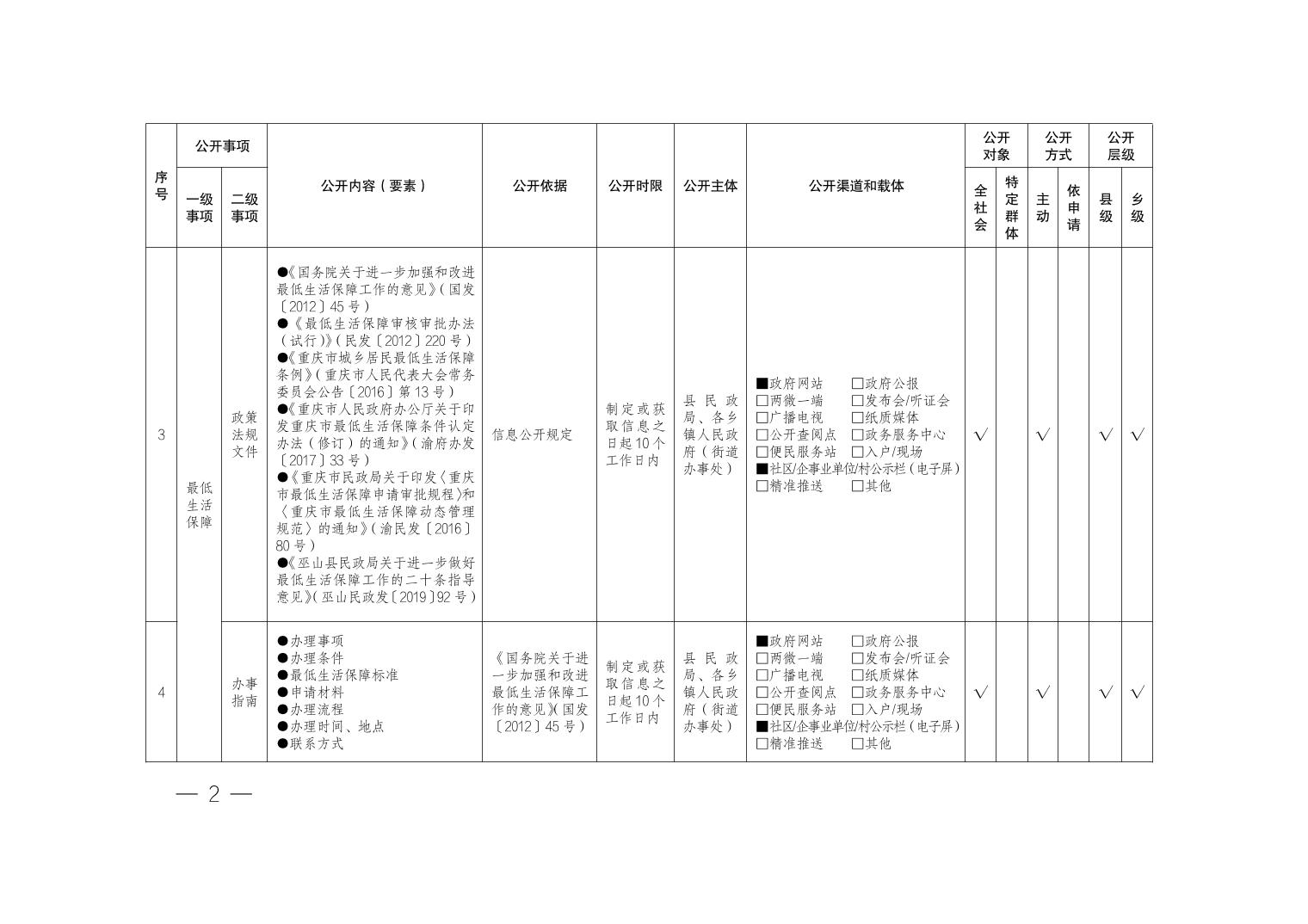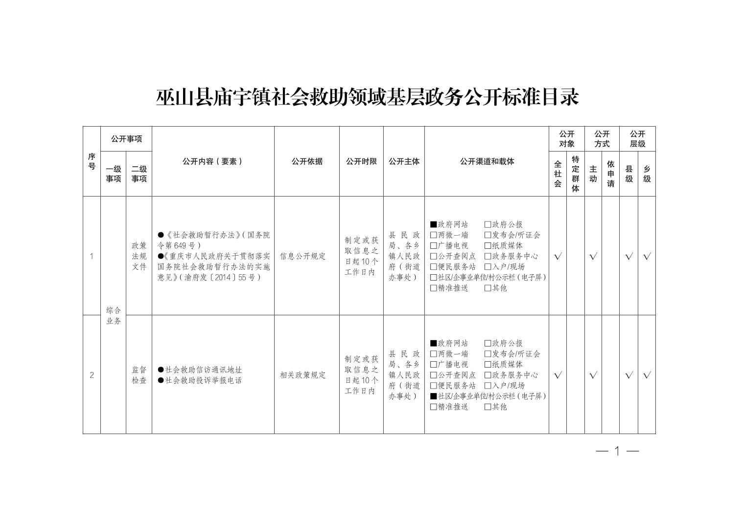 巫山县庙宇镇社会救助领域基层政务公开标准目录