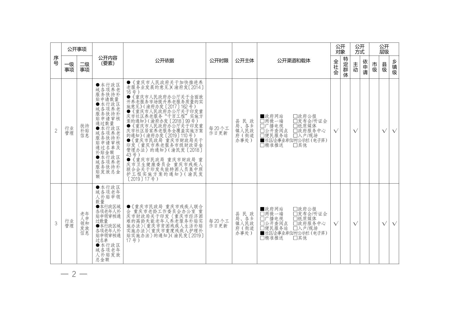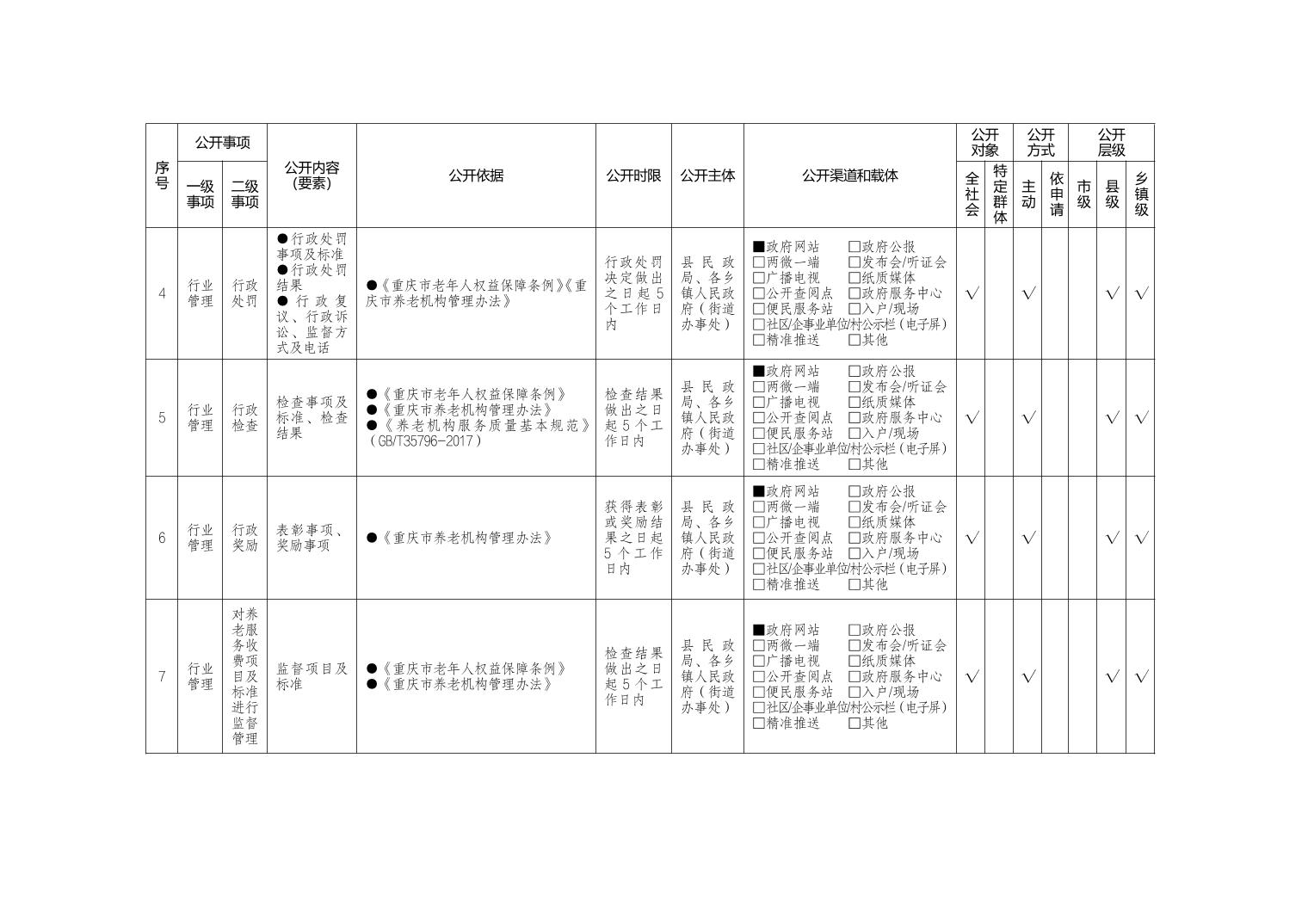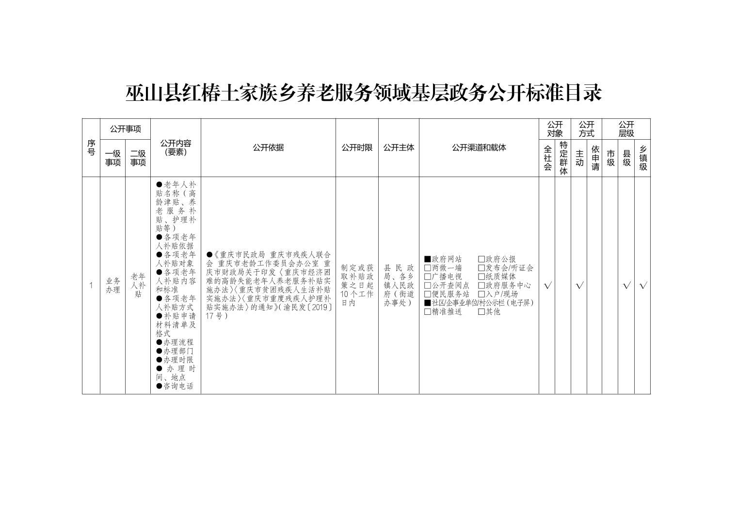 巫山县红椿土家族乡养老服务领域基层政务公开标准目录