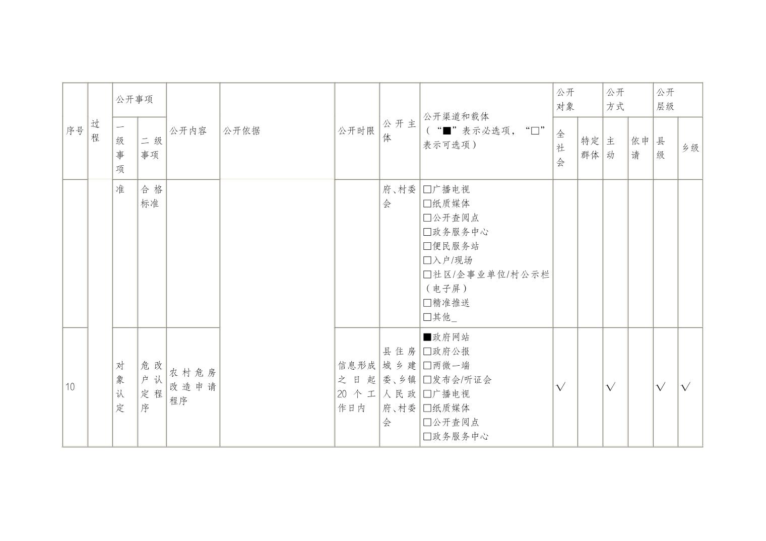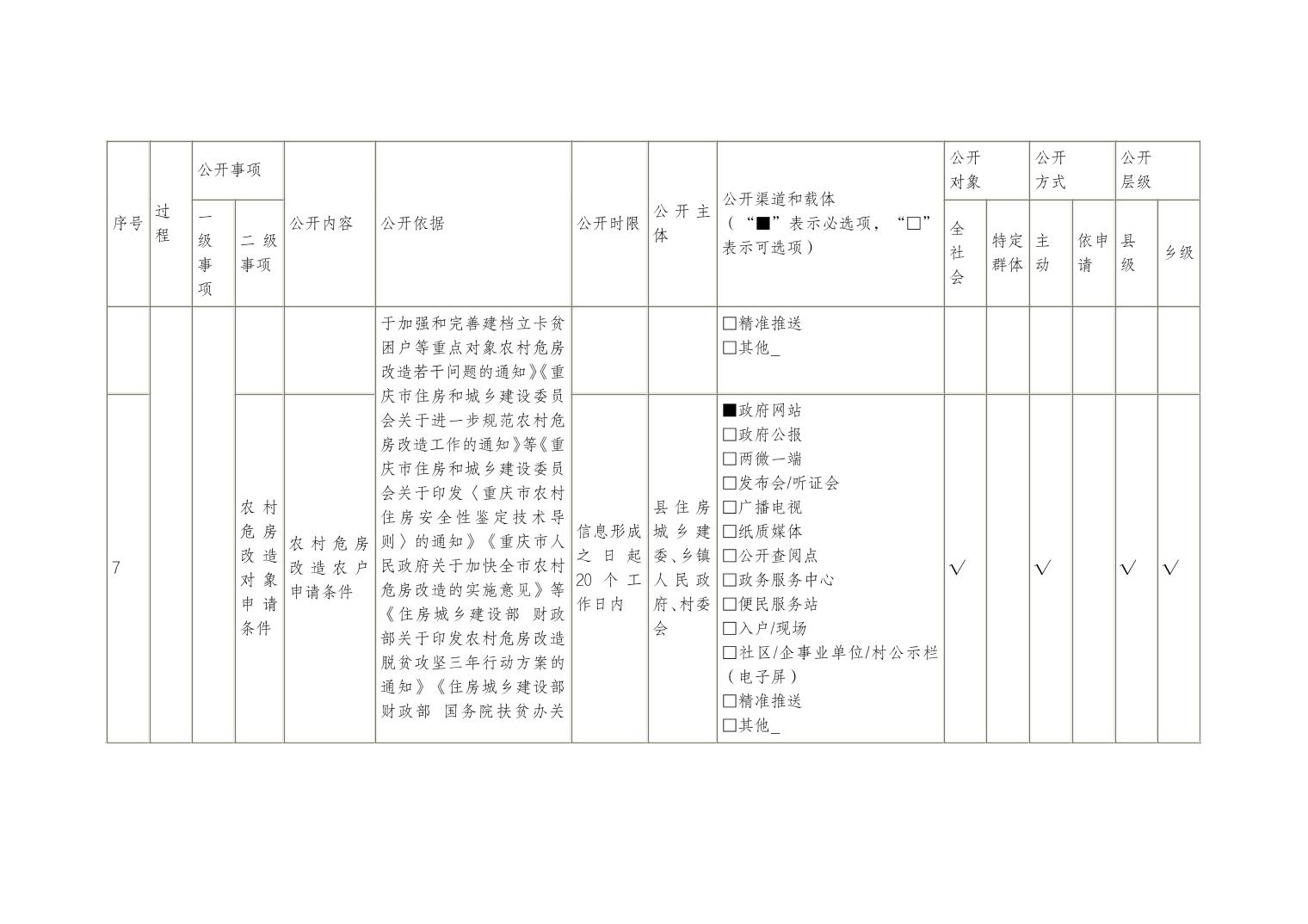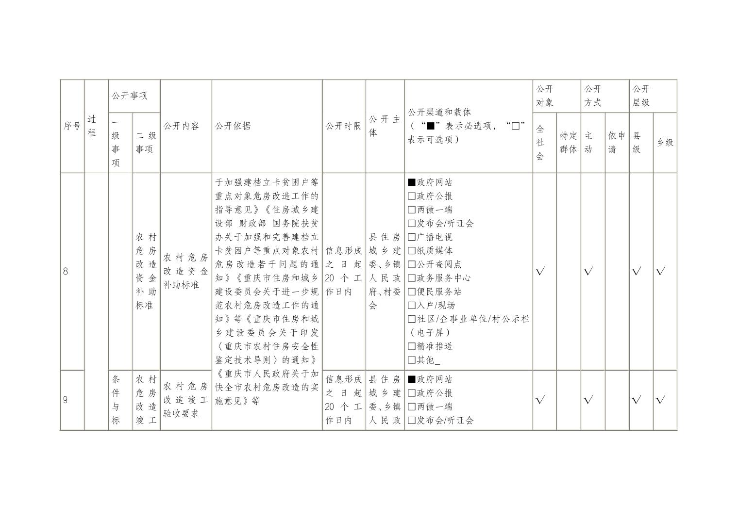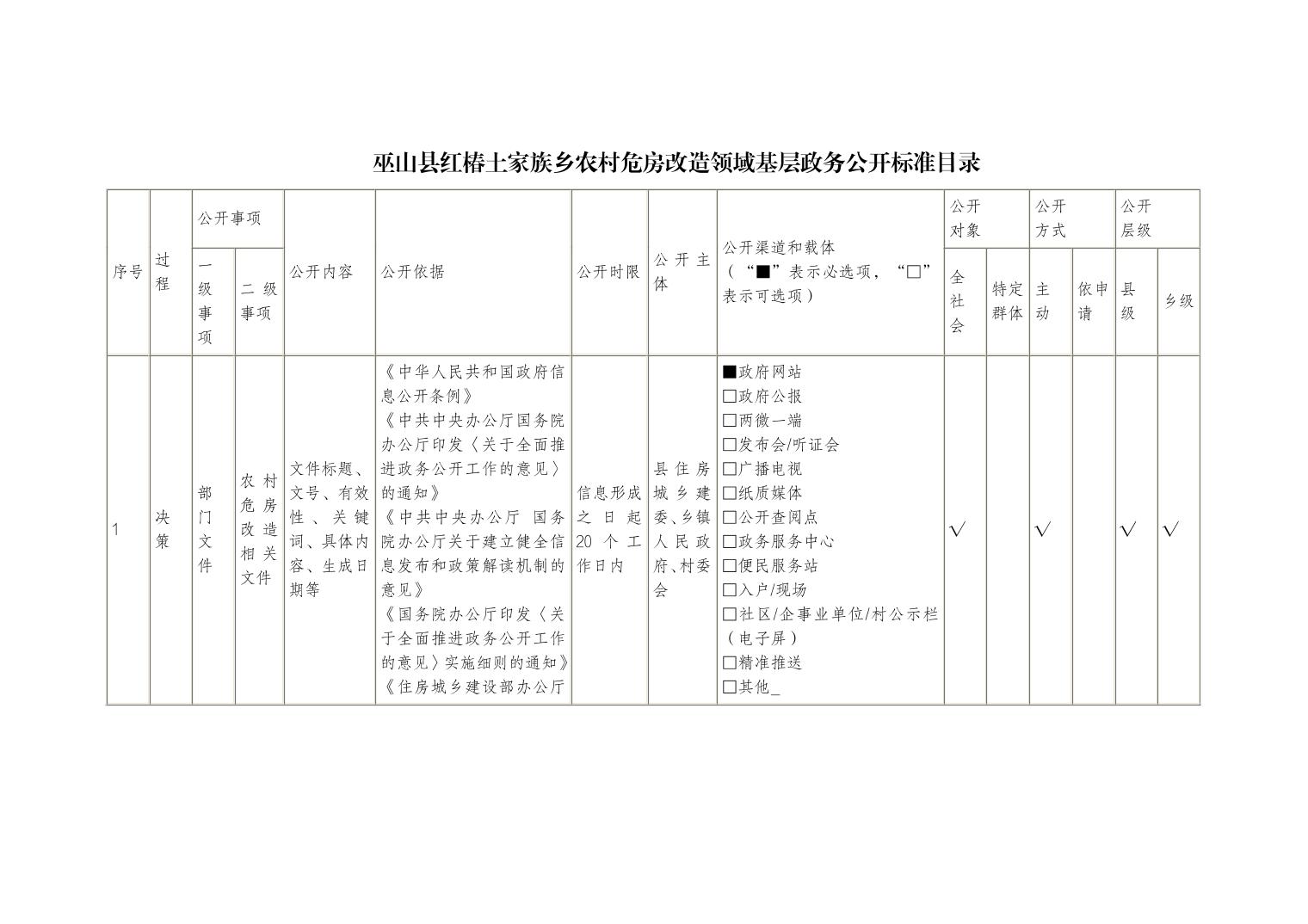 巫山县红椿土家族乡危房改造领域政务公开标准目录