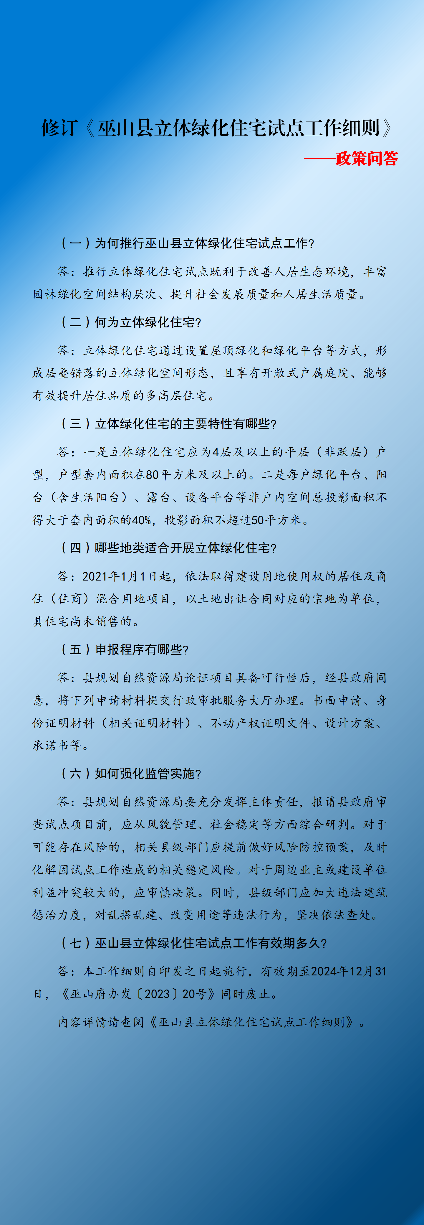 《巫山县立体绿化住宅试点工作细则》政策问答
