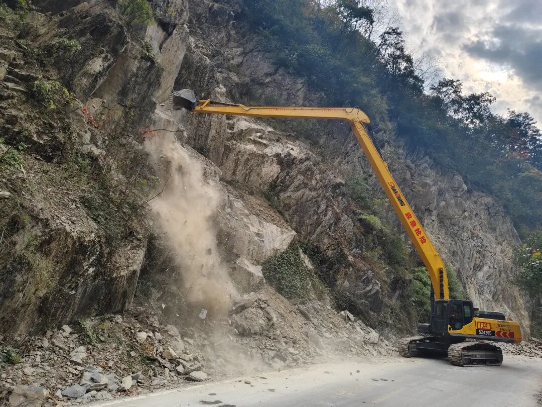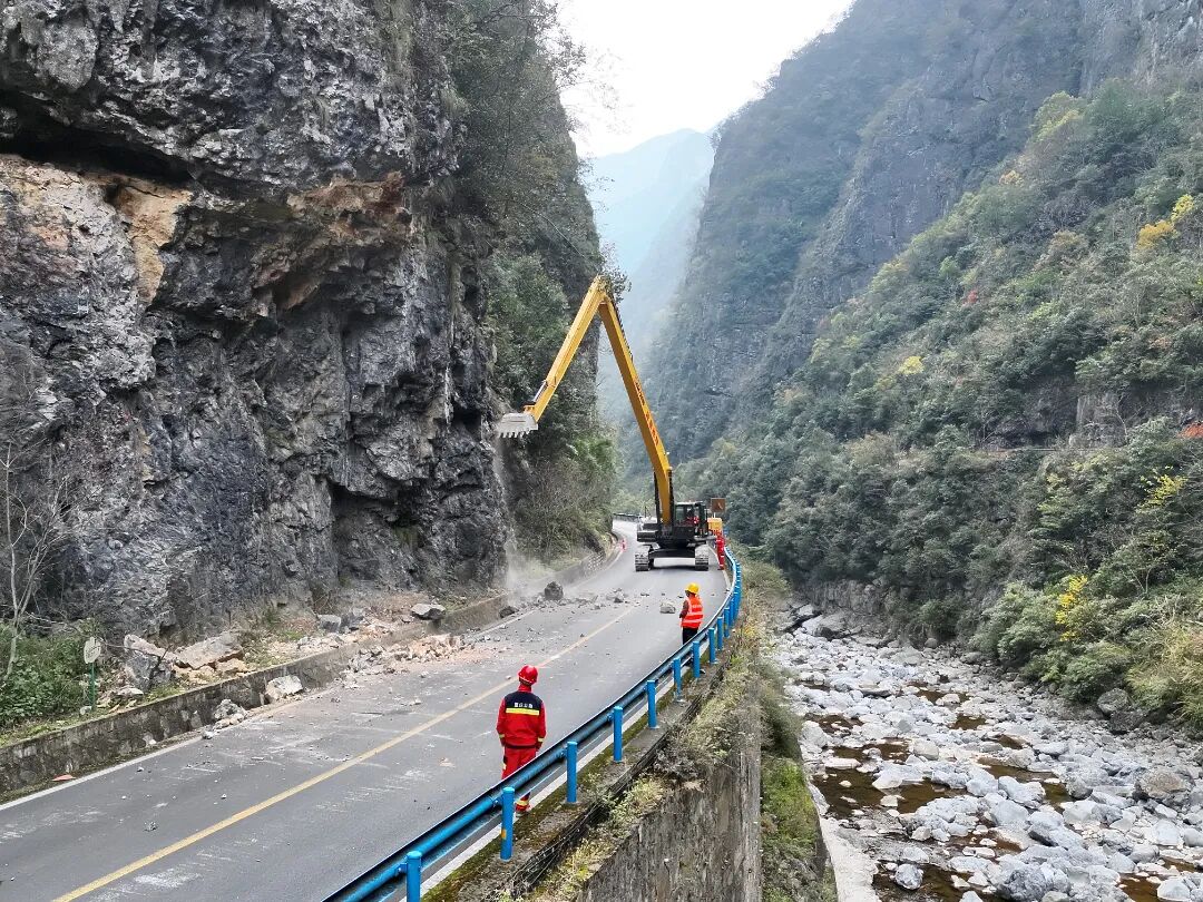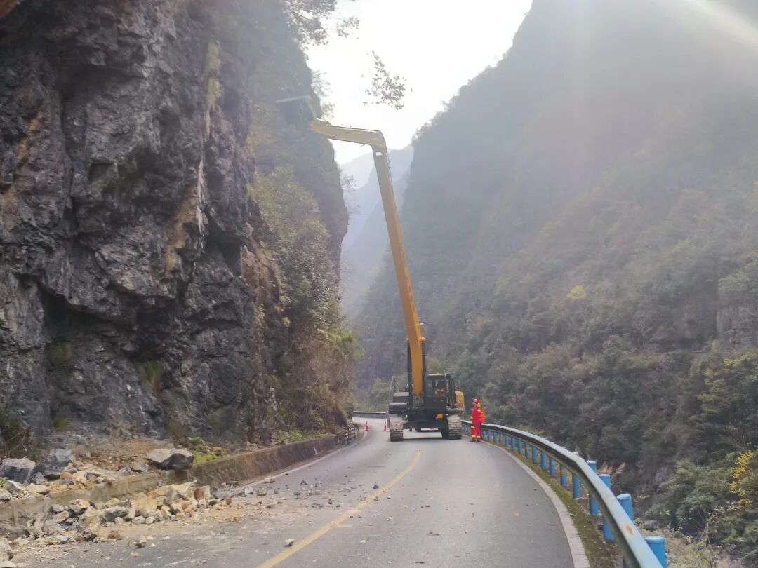 12月10日,县公路事务中心在日常巡查中发现该处隐患后,第一时间上报至市公路事务中心。市公路事务中心接报后立即启动应急联动预案,接报一小时内即确定支援方案,紧急调度专业应急力量。承担主力处置任务的长臂挖掘机、技术人员从江津双福应急基地迅速集结,于当日出发,星夜兼程赶赴现场,实现了“发现即响应、指令即行动”的高效调度。
