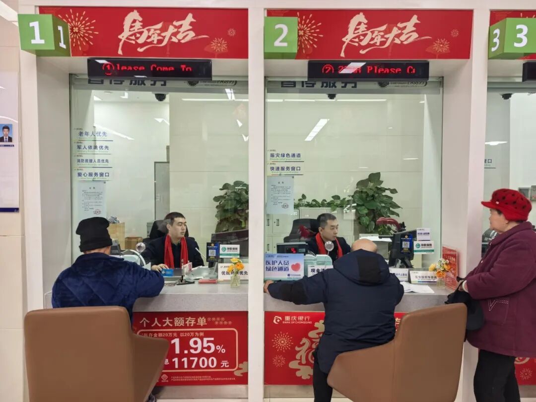 在银行营业大厅内,工作人员已统一着装到岗,热情地为前来办理业务的市民提供耐心细致的引导和服务。