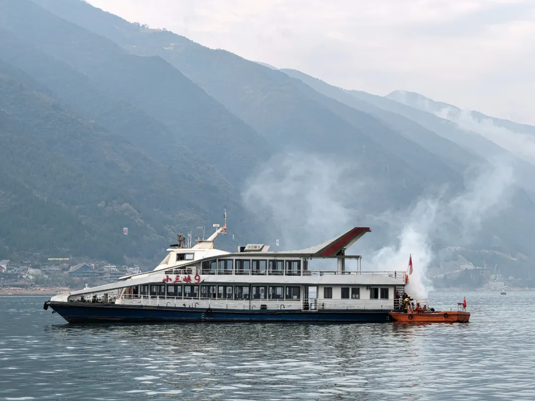“大风黄色预警!大宁河口突发8级以上阵风,一艘客船失控碰撞,有人员落水、机舱起火,立即启动应急响应!”3月27日上午,随着一阵急促的警报声响起,一场贴近实战的水上应急演习在大宁河口水域拉开帷幕。